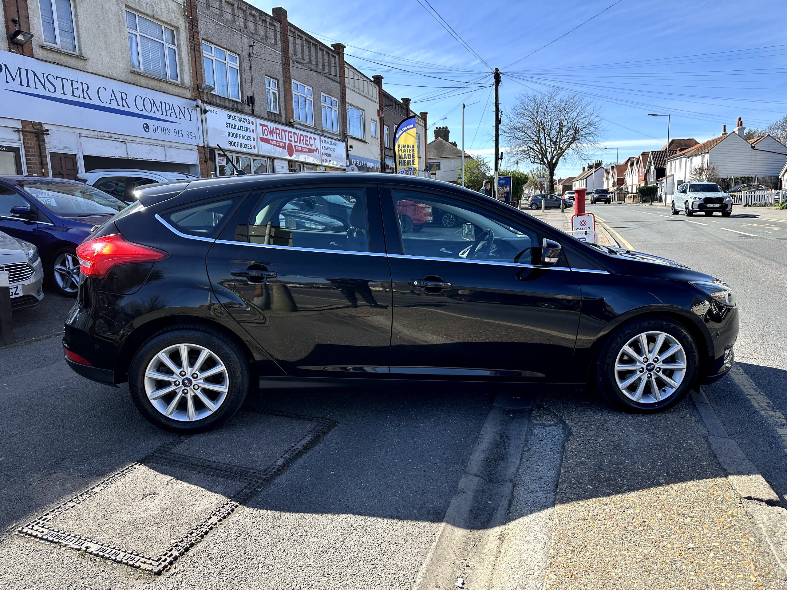 2017 Ford Focus 1.0T EcoBoost Titanium Hatchback with only 55,369 miles on the clock and full service history 5 x stamps in book, 4 services carried out by Ford Main Agent , MOT till march 2027 ,oil service just carried out 55,458 miles. 2 remote locking key's. This is a reliable and efficient choice for anyone in need of a practical vehicle. Powered by a Petrol engine and a manual transmission, this Euro 6 (s/s) model is ULEZ compliant. With 5 doors and 5 seats, it provides ample space for passengers and luggage, while the 16in Alloy Wheels, Chrome Finish on Upper Door Line, Heated Electric Door Mirrors, and Chrome Finish Front Grille add a touch of style. Additionally, the locking wheel nuts ensure safety and security on the road. The perfect combination of functionality and aesthetics, this Ford Focus is ready to take you on your next adventure. For more info please call the showroom on 01708 913 354, friendly service at all times
